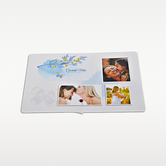 - Com capa impressa em papel fotográfico lustre revestida com plastificação, personalizável na parte da frente, verso e lombada;